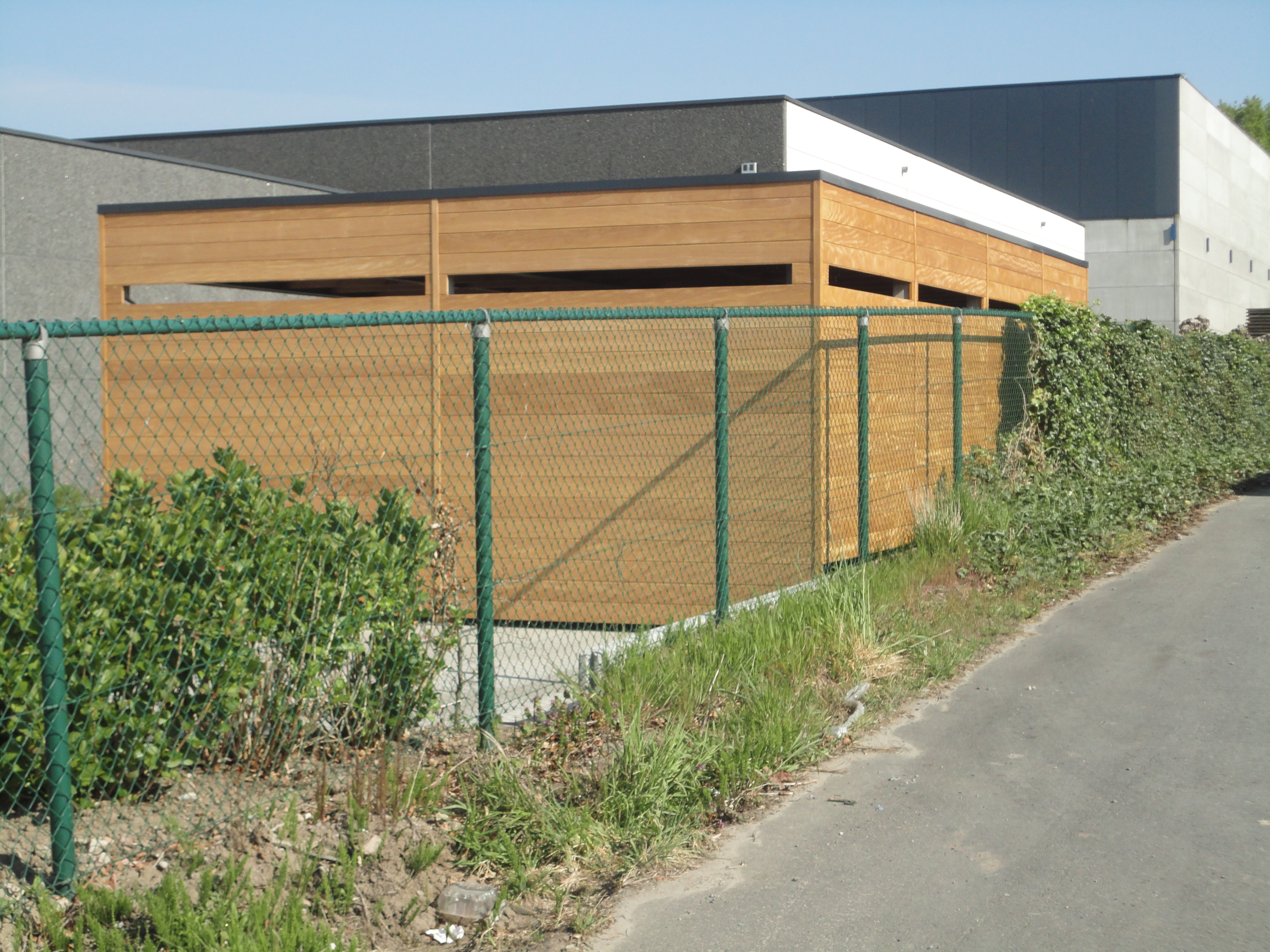 De constructie bestaat uit palen en liggers, met aan de buitenzijde gemonteerde planchetten. Voor het dak zijn metalen liggers gebruikt, waardoor een overspanning van acht meter kon worden gerealiseerd. Het platte dak is afgedicht met hoogwaardig EPDM-rubber. Om een strakke uitstraling te behouden, is de afvoerbuis aan de binnenzijde geplaatst.