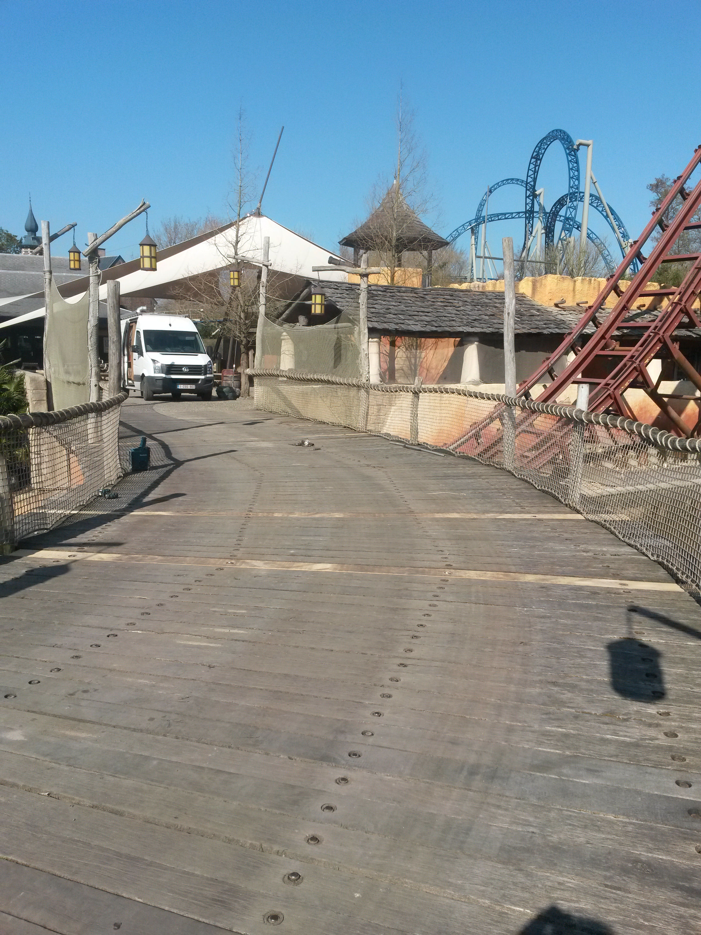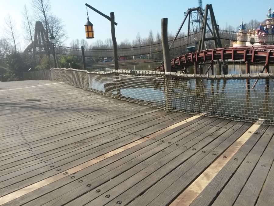 Een bijzonder en uitdagend project dat we mochten uitvoeren, betrof het vervangen van de eiken balken aan de voetgangersbruggen in Plopsaland De Panne.