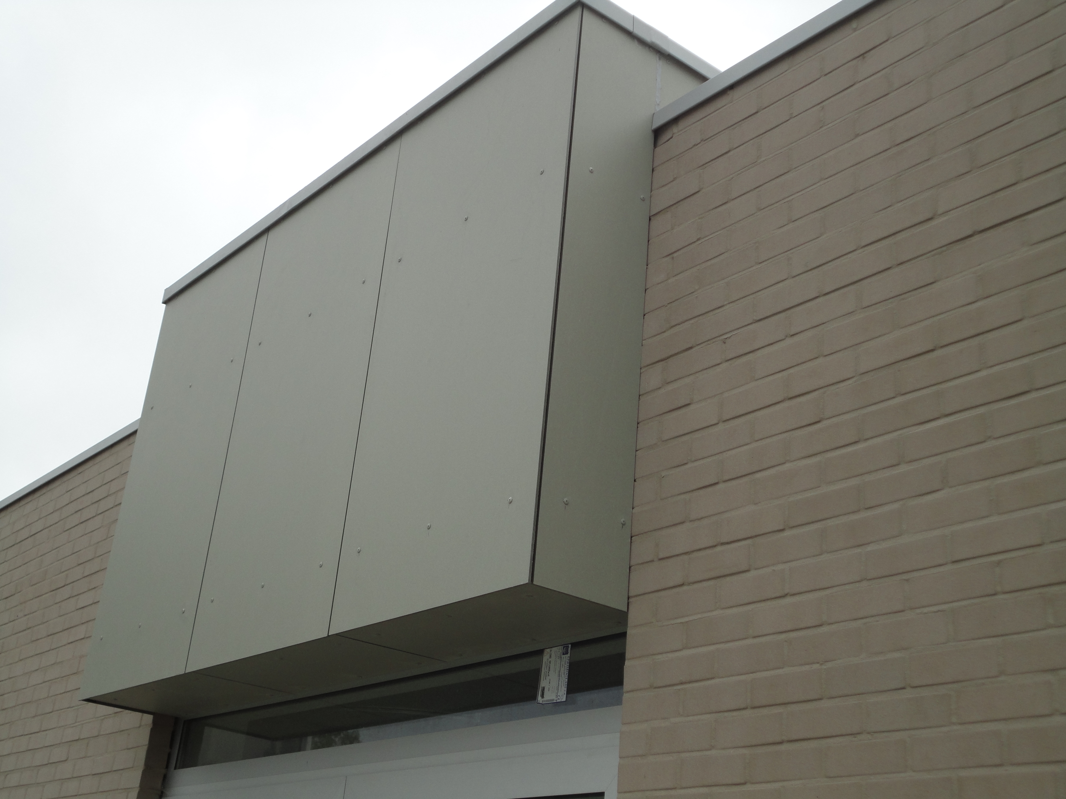 Een belangrijk voordeel van Eternit-platen is dat de kern van de plaat dezelfde kleur heeft als de zichtbare buitenlaag. Dit zorgt ervoor dat eventuele krassen of beschadigingen minder opvallen, wat bijdraagt aan een langdurig mooie uitstraling. Bij dit project zijn de platen zichtbaar bevestigd, wat niet alleen een industriële en moderne look geeft, maar ook zorgt voor een stevige en betrouwbare constructie. Het resultaat is een functionele en visueel aantrekkelijke tribune die bestendig is tegen de elementen en jarenlang meegaat.
