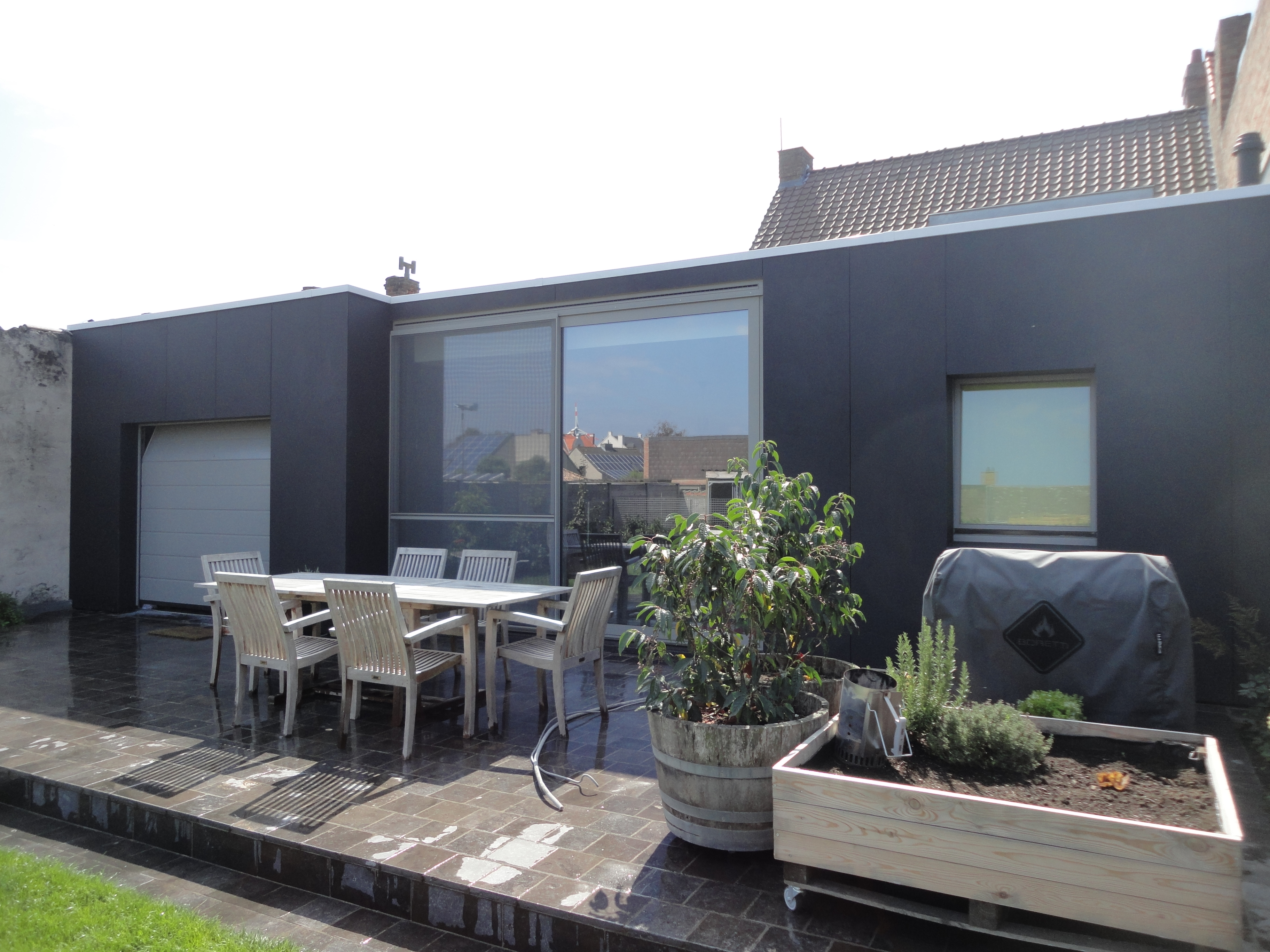 Opfrissing van het privégedeelte en de garage met nieuwe gevelbekleding.