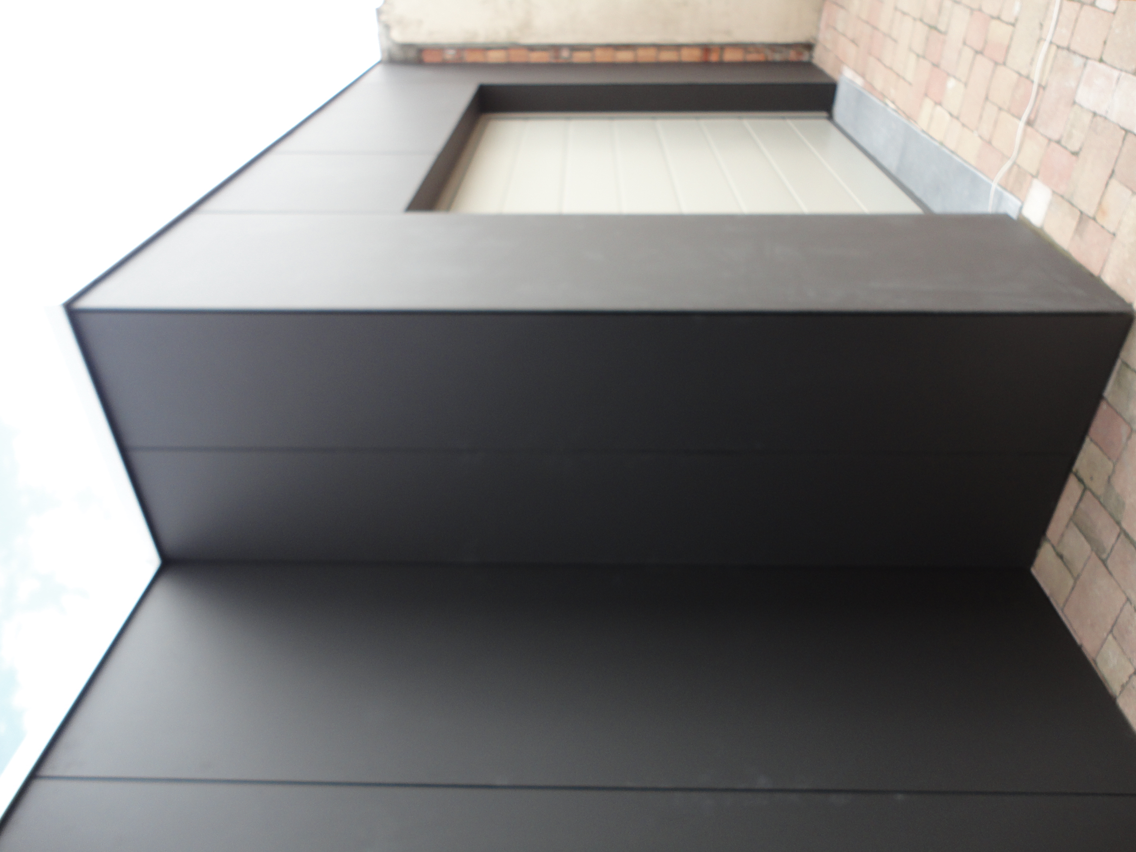 Het privégedeelte en de garage zijn voorzien van een nieuwe gevelafwerking. Eerst is er isolatie aangebracht, gevolgd door een dampopen folie. Deze folie zorgt ervoor dat vocht naar buiten kan ontsnappen, waardoor schimmel- en vochtproblemen worden voorkomen. Tussen de folie en de gevelplaten is een ventilatielat geplaatst, zodat er voldoende luchtcirculatie mogelijk is. Vervolgens zijn de gevelplaten aangebracht en verlijmd, voor een strakke en verzorgde afwerking.