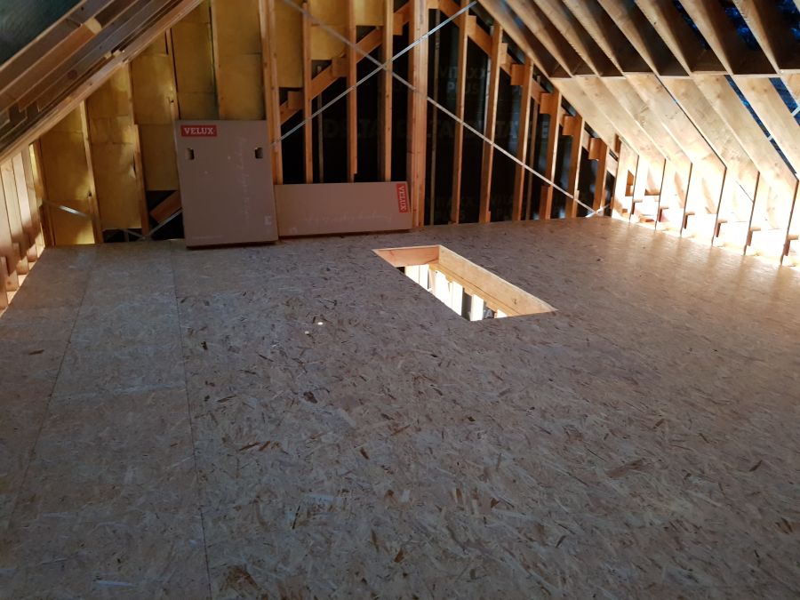 De uitvoering verliep in duidelijk afgebakende fasen: eerst zijn de fundering en betonplaat aangelegd, inclusief alle benodigde nutsvoorzieningen. Vervolgens is het houtskelet opgebouwd, gevolgd door de constructie van het dak. Tot slot is de woning zorgvuldig water- en winddicht gemaakt, klaar voor de verdere afwerking. Dit zorgt voor een stevige, duurzame en energiezuinige basis voor de verdere inrichting.